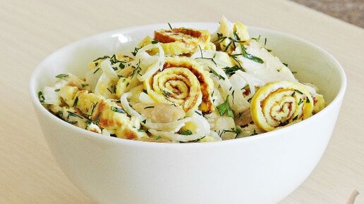Лёгкий и интересный. Салат с курицей и омлетом