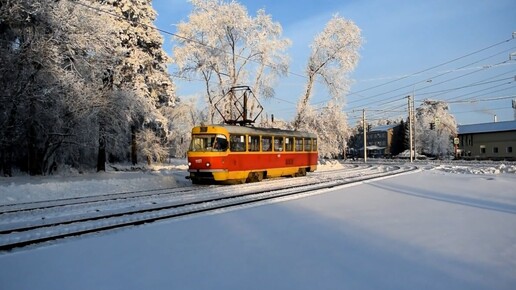 Трамвай Tatra T3SU-1157. Разворот на кольце.