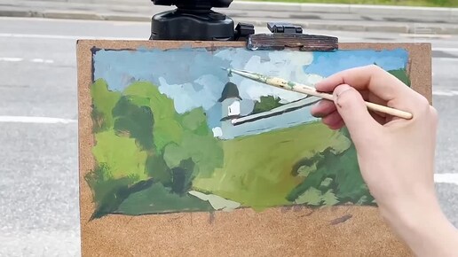 Отрывок урока из курса Анны Хопта "Пейзаж акрилом. Как рисовать на пленэре". Рисуйте вместе с нами!