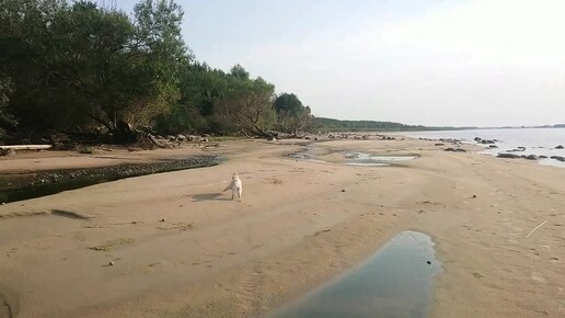 Пудель "зажигает" на пляже Рыбинского водохранилища
