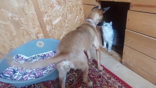 Вместе бодрящего кофе, у наших хвостиков весёлые игры по утрам. 2 маленькие собачки и котенок