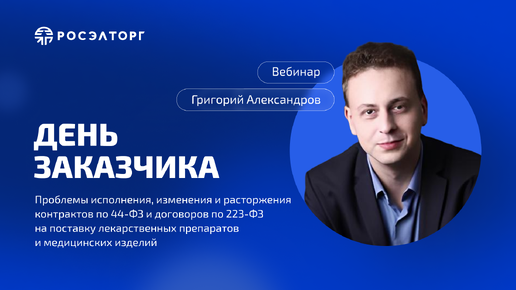 День заказчика Росэлторг. Проблемы исполнения, изменения и расторжения контрактов по 44-ФЗ и договоров по 223-ФЗ на поставку ЛП и МИ