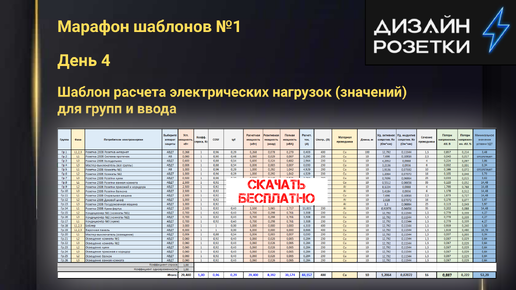 Марафон шаблонов! День 4: Шаблон расчета электрических нагрузок (Light)! Скачать шаблон бесплатно!