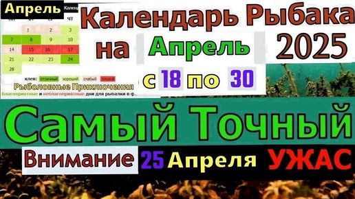 Прогноз клева рыбы на Эту неделю с 25 по 30 АПРЕЛЯ 2025 Календарь рыбака на апрель Лунный календарь