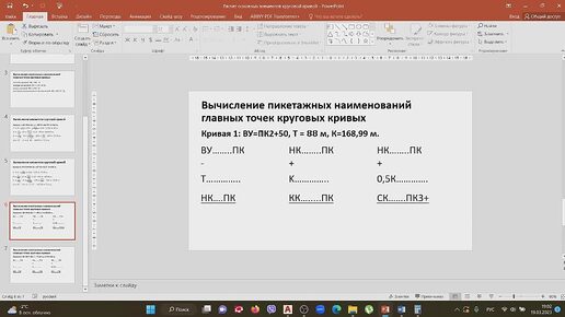 Часть 2. Вычисление пикетажных наименований главных точек круговых кривых