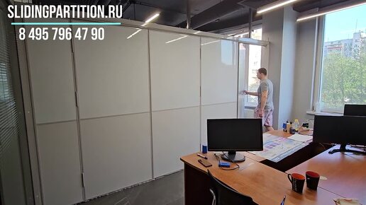 Закрытие раздвижной стены Антей в офисном пространстве в Москве