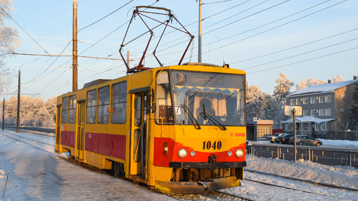 Трамвай Tatra T6B5SU-1040. Покатушки по Барнаулу. Спуск с Горы.