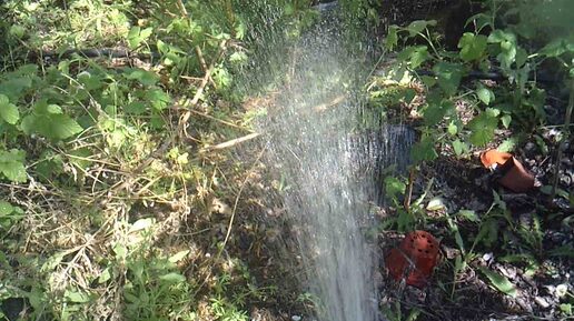 Укладывание распылителя для полива малины.