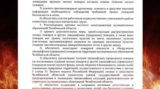 Постановлением правительства Челябинской области с 25 апреля на всей территории региона вводится особый противопожарный режим.