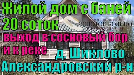 Продается жилой дом с баней на уч. 20 соток, выход в лес и реке, д. Шиклово, Александровский р-н