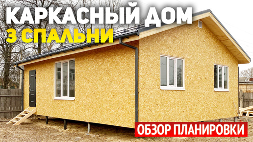 Проект одноэтажного каркасного дома 7х10м: кухня-гостиная, 3 спальни, ванная, котельная, прихожая