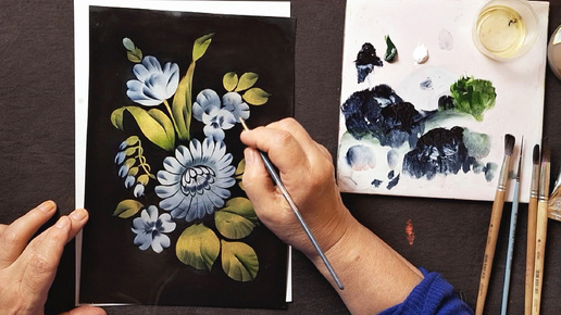 Жостово - Металлические порошки. ЗОЛОТО и СЕРЕБРО. | Часть 02 | Мастер-класс по Жостовской росписи ДЕМО