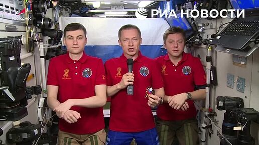 «Сегодня, находясь на орбите, мы с гордостью держим в руках Георгиевскую ленточку»