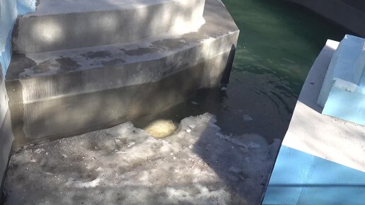 Кай играет с канистрой под льдиной, ныряет и плавает. 26.04.2025