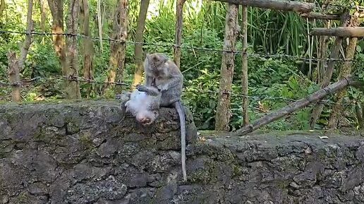 Обезьянки отдыхают на острове Бали в Индонезии