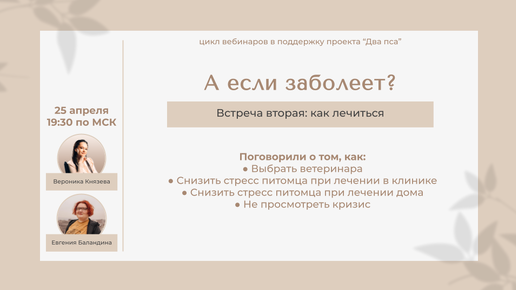 "Как лечить?" - вторая встреча цикла вебинаров "А если заболеет?" с Вероникой Князевой и Евгенией Баландиной