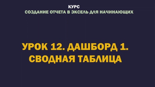 Excel. Создание отчета для начинающих. Урок 12. Дашборд 1. Сводная таблица
