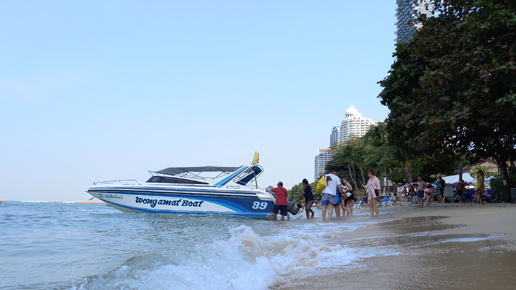 Курортный Таиланд. Скоростной катер забирает туристов с пляжа Wong amat в Паттайе.