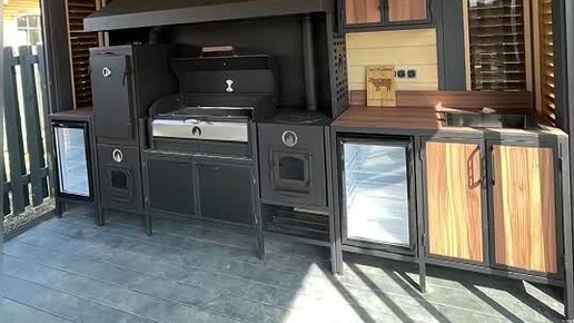 Гриль-зона вашей мечты! Тихий вечер, манящий треск углей и сочное мясо… Вот оно — идеальное гриль-патио!✨