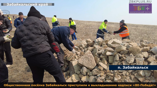 ЗБК + Общественники посёлка Забайкальск приступили к выкладыванию надписи «80-Победа!»