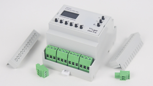 VJLight DMX R-6i - DMX реле на DIN рейку 6 каналов по 16А/250VAC с двойной гальванической развязкой и OLED экраном.