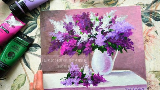 Рисую Сирень акриловыми красками на холсте