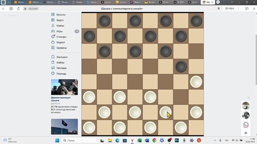 Шашки (ВКонтакте). Игра с компьютером, уровень Гроссмейстер.