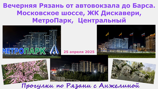 Вечерняя Рязань от автовокзала до Барса. Московское шоссе, ЖК Дискавери, Метро Парк, Центральный