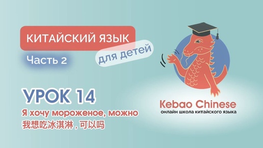 Китайский язык для детей. Школа Кебао. Часть 2. Урок 14. Тема "Я хочу мороженое, можно 我想吃冰淇淋,可以吗".