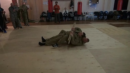 Работа на земле - Переползание на спине вдвоем с предметами