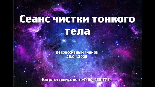 Сеанс чистки тонкого тела 28.04.2025.Регрессивный гипноз.Наталья Соколова.