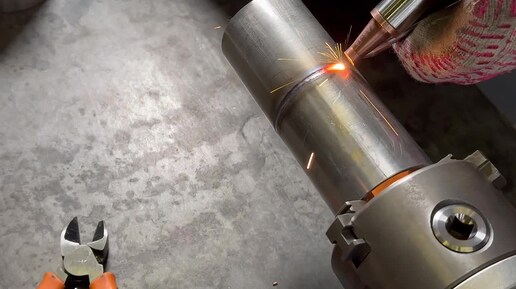 Сварка труб по окружности без присадки с помощью поворотного (роторного) устройства на Turbolase 2000w