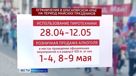 В Красноярском крае на период майских праздников вводится запрет на использование пиротехники и ограничения на розничную продажу алкоголя