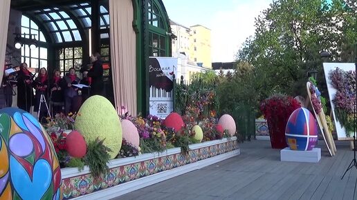 Концерт хорового коллектива на Тверской площади, украшенной к Пасхе