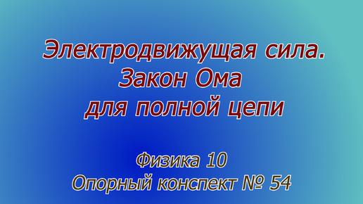 Физика10 ОК 054 Электродвижущая сила. Закон Ома для полной цепи