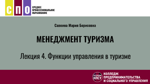 Лекция 4. Функции управления в туризме