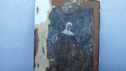 Расчистка иконы, удаление записей (Реставрация иконы Всех скорбящих Радость)