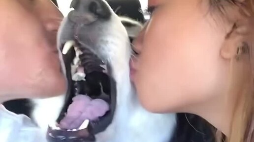 Собаки недовольничают, когда их целует человек😂