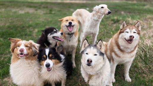 7 собак на прогулке сразу🙈. Теперь и Белгородская борзянка гуляет со всеми вместе!