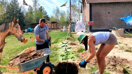 Жизнь в селе. На заброшенном участке сажаем огромный сад из плодовых деревьев. Готовимся к стройке