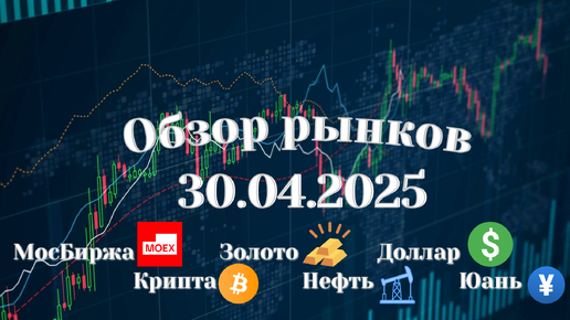 Обзор РФ рынка 30.04.2025 | Торговые идеи по акциям | Биткоин | Крипта | Золото | Юань | Доллар