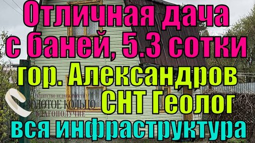 Продаётся каркасная дача с баней на уч.5.3 сотки в СНТ Геолог, гор. Александров, Владимирская обл.