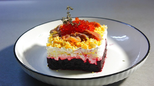 Слоеный салат с красной рыбой и сыром: праздничное угощение.