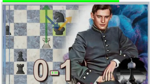 Семен Алапин яростно атакует молодого Алехина черными фигурами. Юный шахматист в 1912 году выдал точность всего лишь 55% (Вильна, 0-1)