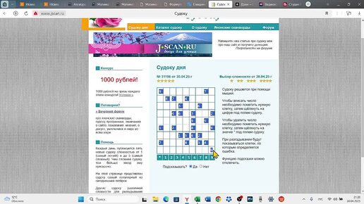 Судоку дня (5*) от 30.04.2025 из сайта jscan