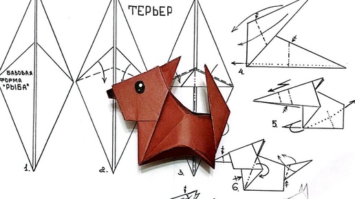 Скотч терьер. Оригами. Базовая форма "Рыба"