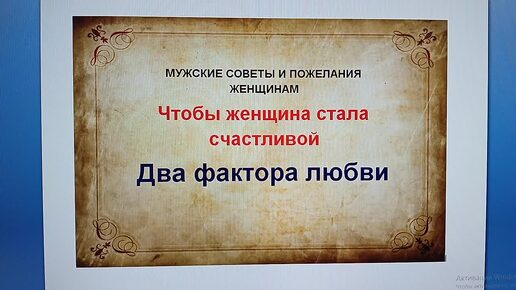 Два фактора любви Мужские советы и пожелания женщинам: Чтобы женщина стала счастливой!