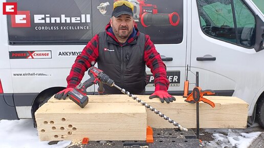 Einhell Аккумуляторный шуруповерт TP-CD 18/120 Li Bl тест на отверстиях под нагели.