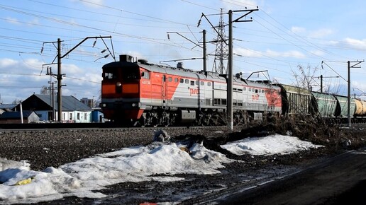 Тепловоз 2ТЭ10М-3387 с приветливой бригадой. Звук 5Д49.