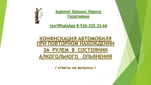 Конфискация автомобиля при повторном нахождении за рулем в состоянии алкогольного опьянения
